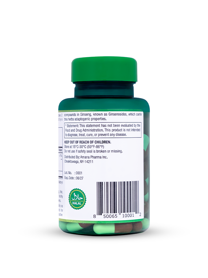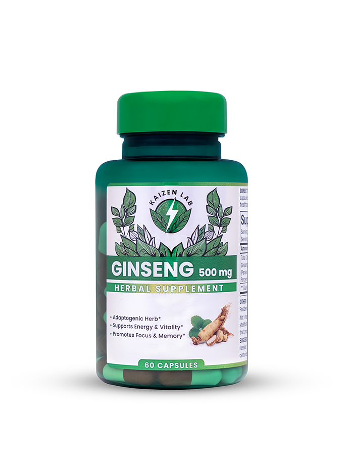 Rediscover your energy and vitality with our Ginseng 500 mg capsules. This adaptogenic herb supports focus, memory, and overall well-being.