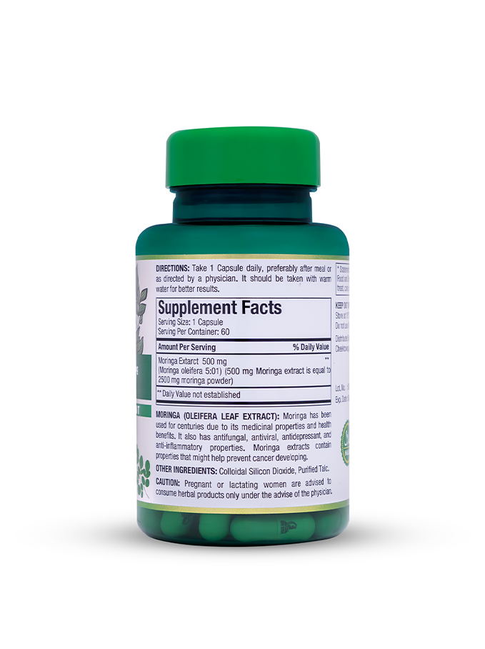 Elevate your daily wellness with Moringa 500 mg, a nutrient-rich herbal supplement traditionally used to support energy, immunity, and overall vitality.*